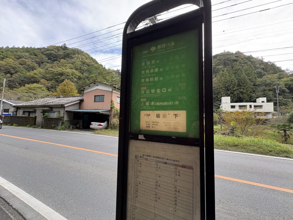 最寄りバス停は坂下。黒沢から行くルートもある。