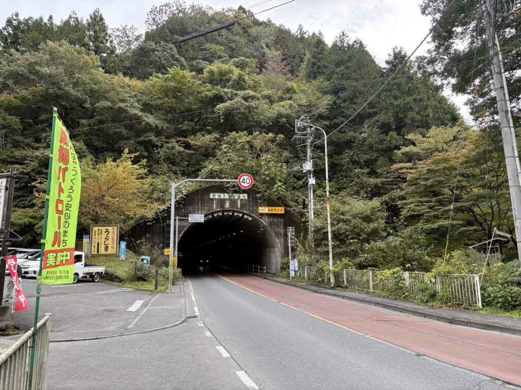 坂下バス停から少し歩くと、新吹上トンネルがある。今回目指す旧吹上と旧々吹上トンネルは新吹上トンネルの上にある。