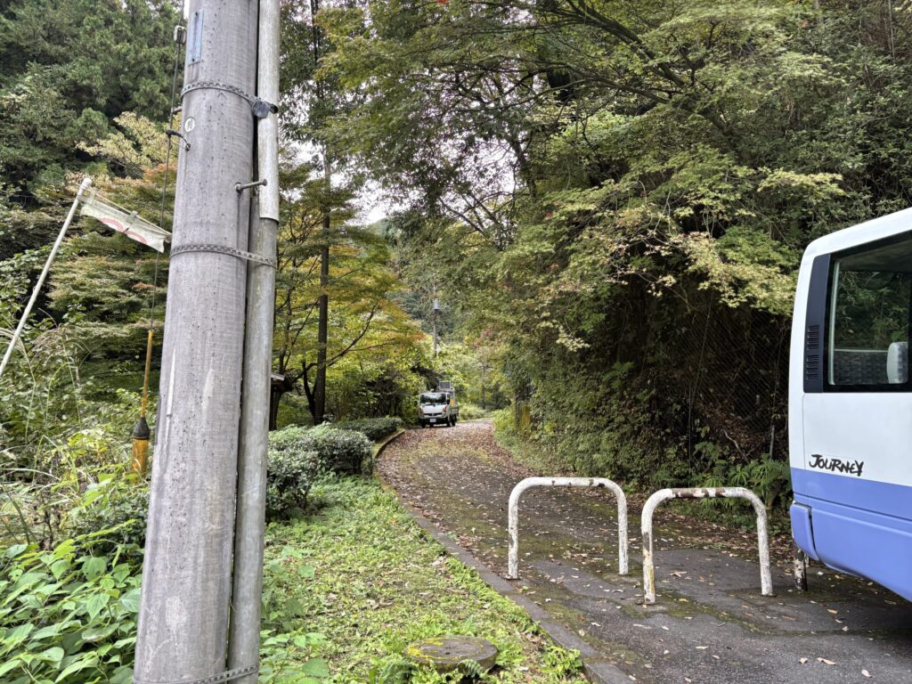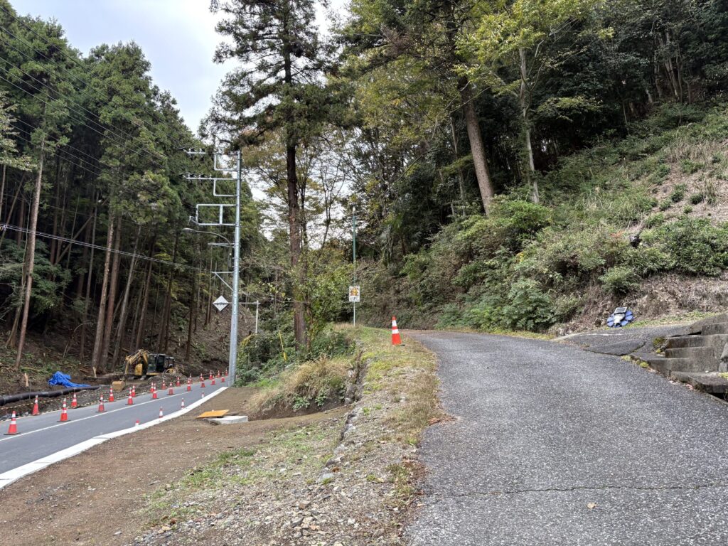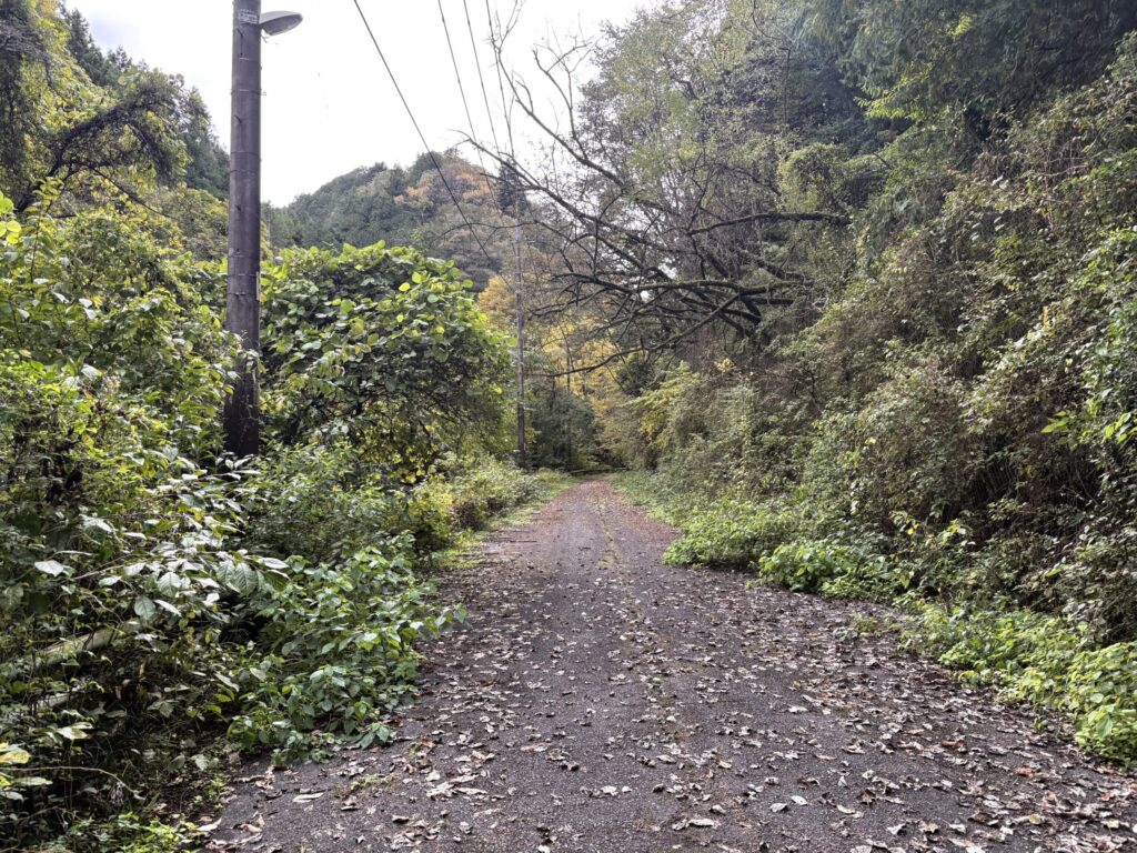 黒沢バス停の目の前にあるこの道を進んでいく。