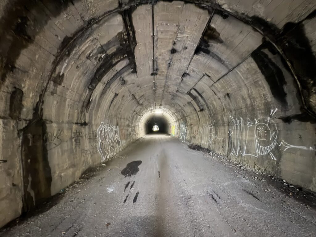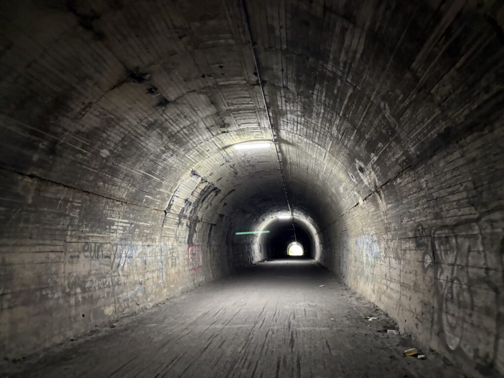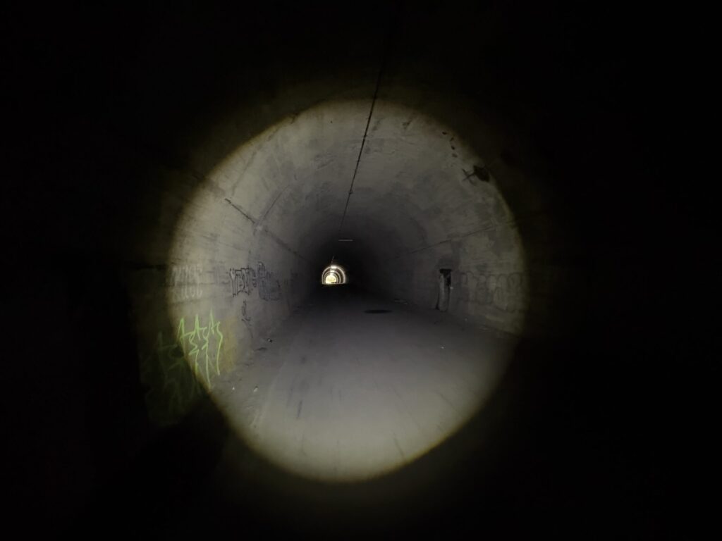 なぜかトンネルの中間くらいだけ電気が消えている。訪問者を怖がらせるためのいたずらか?😅