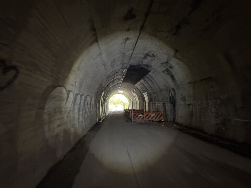 旧吹上トンネルに到着。トンネル内は電気が付いている。親切だなあ😅
