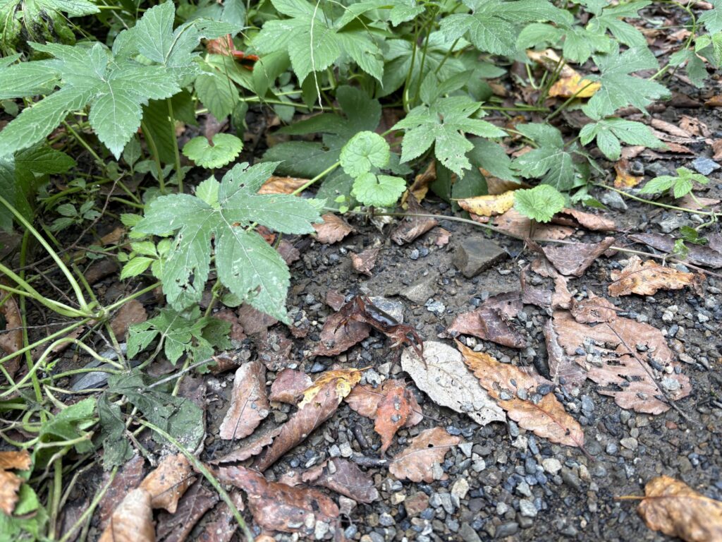 続いては南側坑口へのルートを紹介する。写真は道中で見かけたサワガニ。