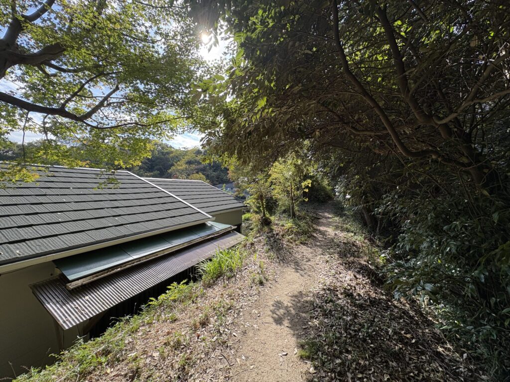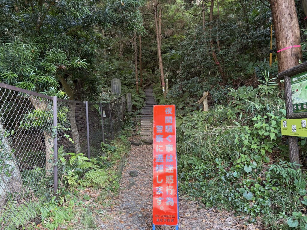 やぐらの奥には祇園山へと続く祇園山ハイキングコースがある。