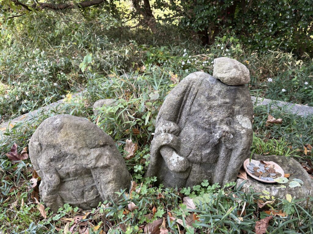 見晴台には多くの観光客がいたけどみんな八雲神社側から来てるっぽい。ちなみに八雲神社から見晴台までは300m弱でとても近い。写真は見晴台にある首が失われた石像。