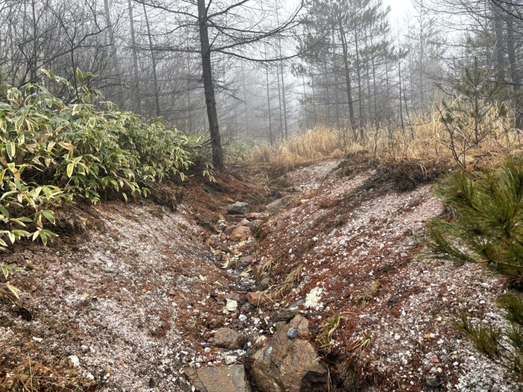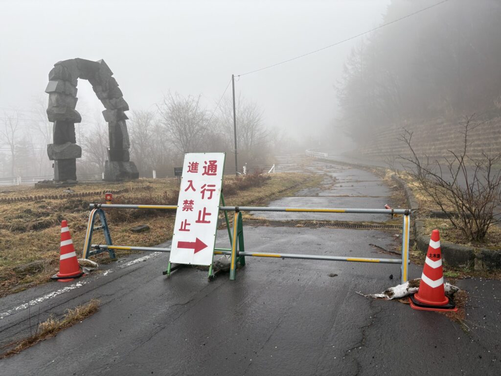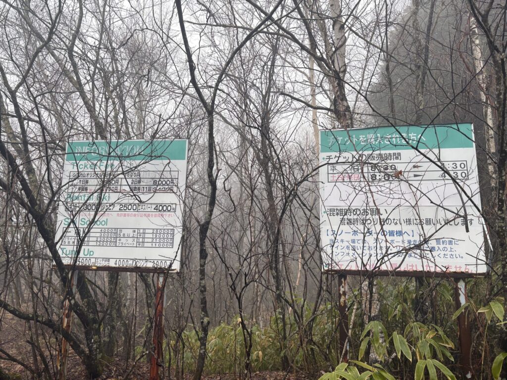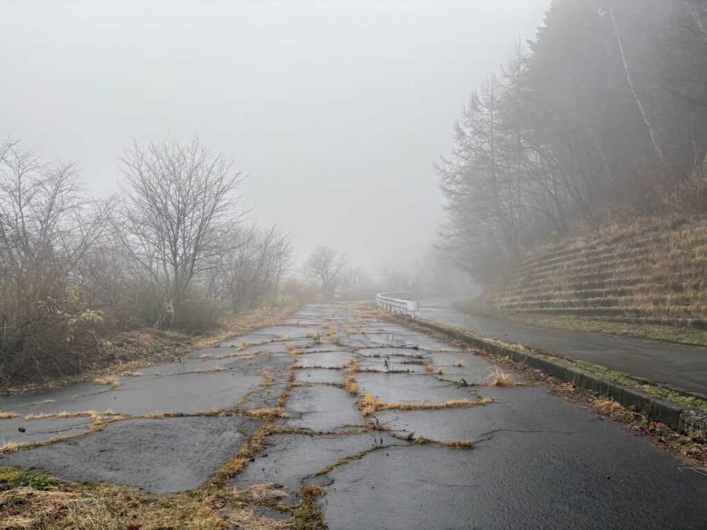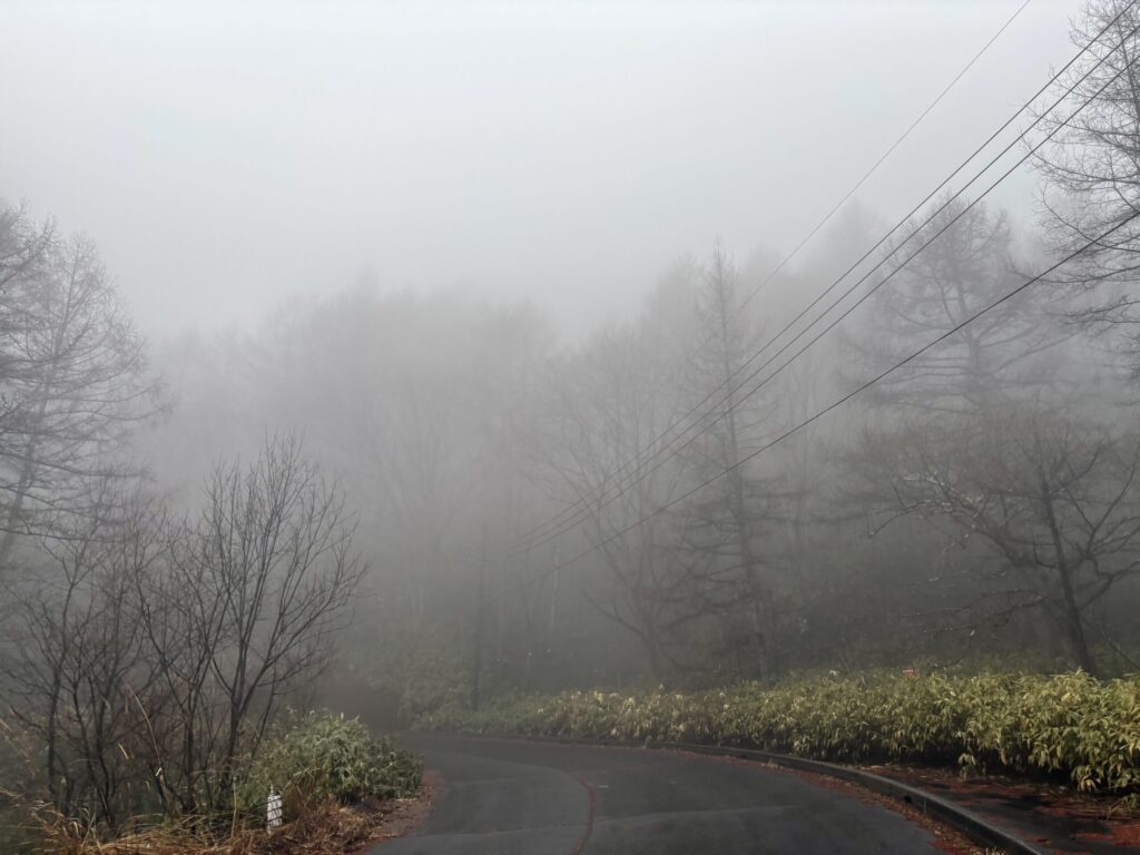 ちなみに白根硫黄鉱山という廃鉱がスキー場の近くにあるのだがこの濃霧の中見つけ出すのは無理だったため断念。。。