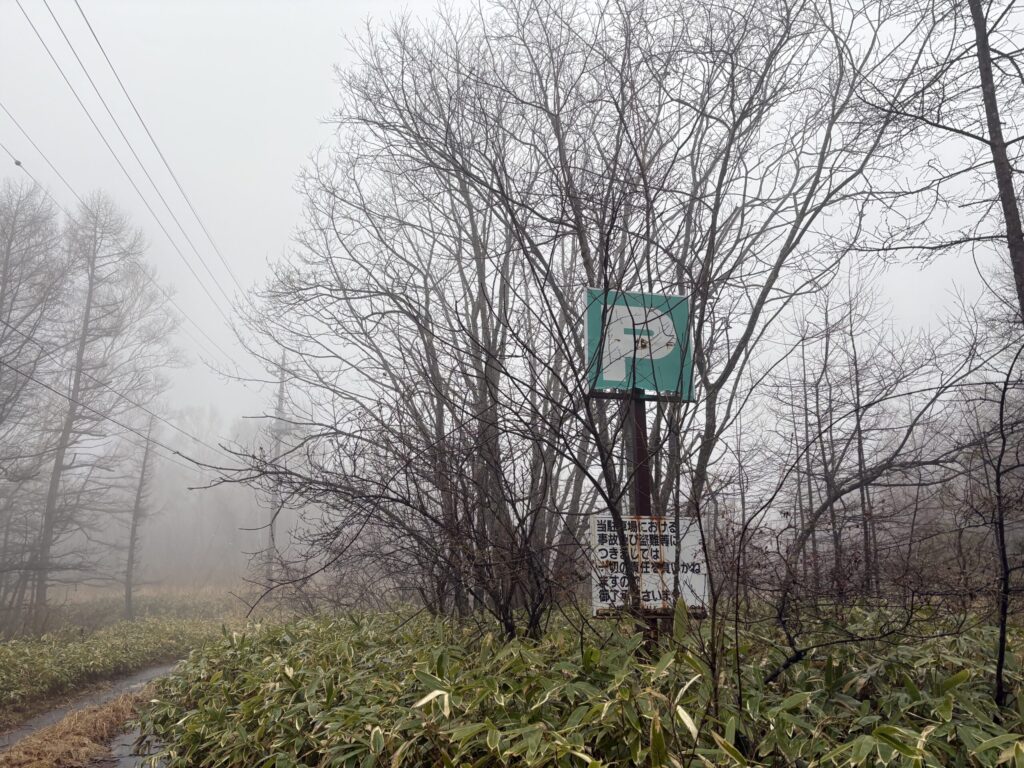 しばらく歩き駐車場のP看板に到着!