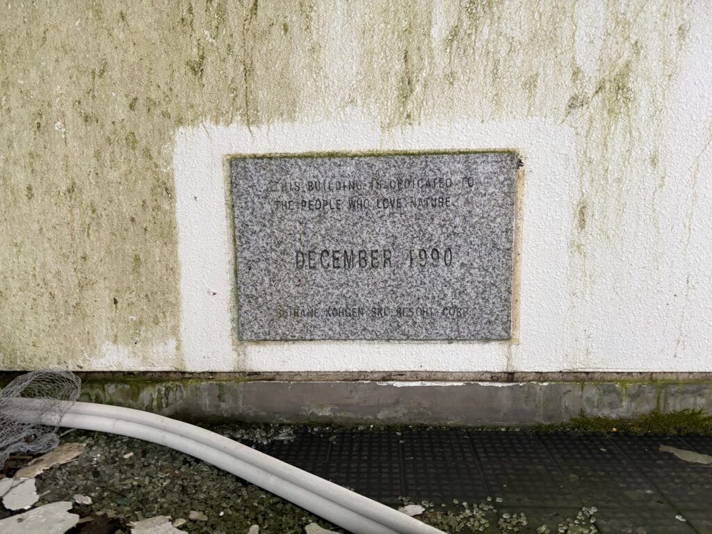 入口の前にある定礎には1990年12月の文字が刻まれている。