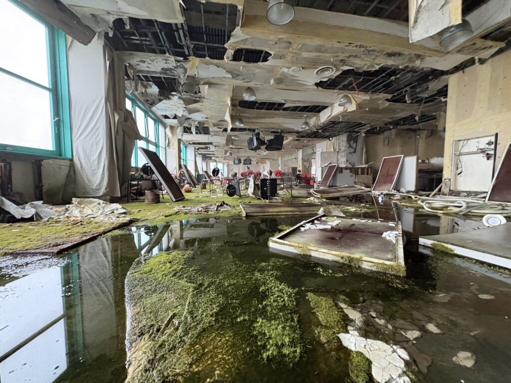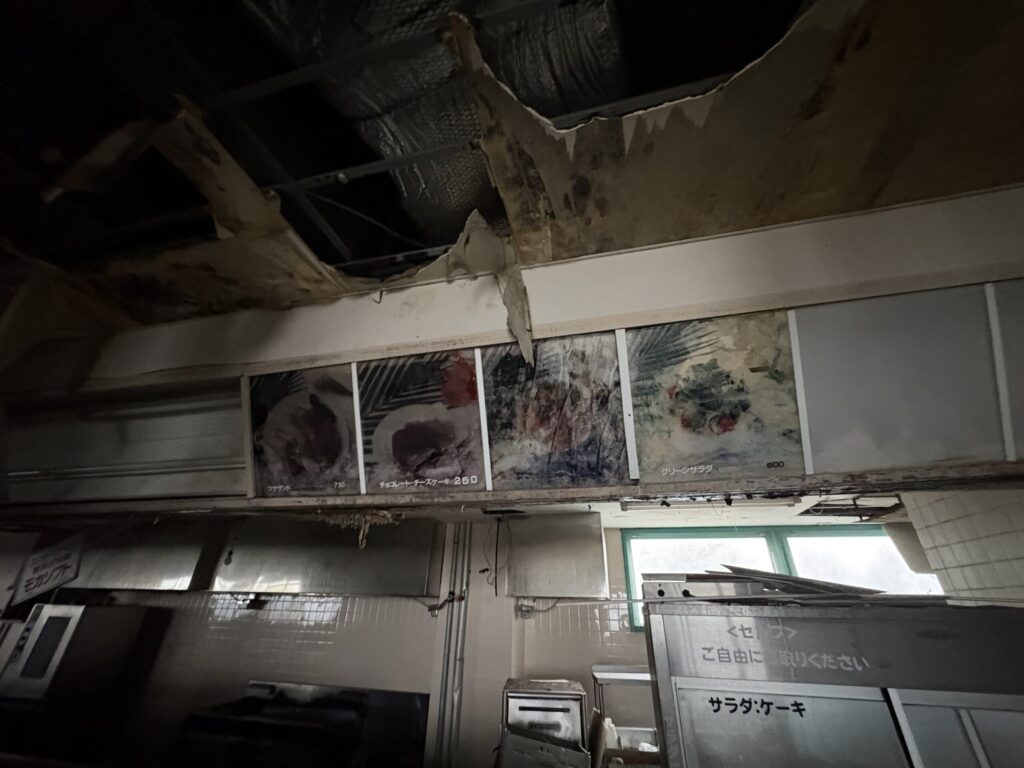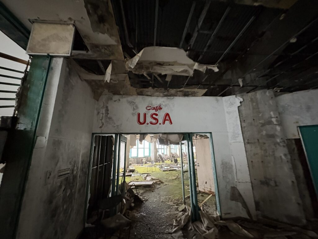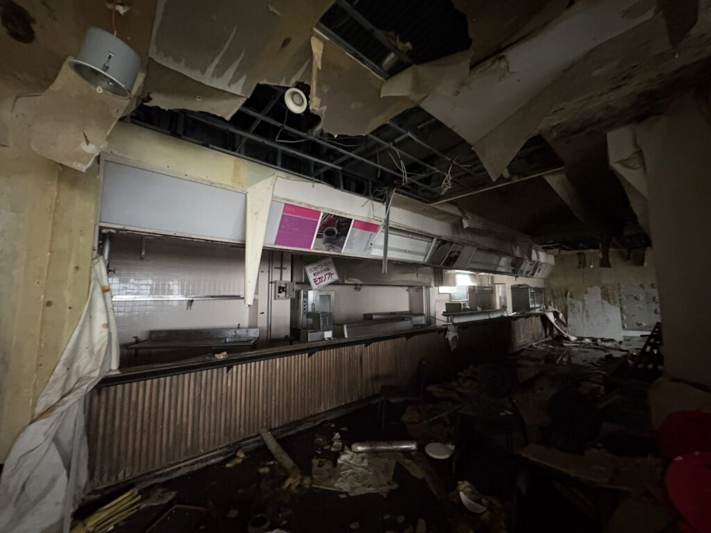 駐車場跡。広く、バブル期の訪問者数を感じさせる。