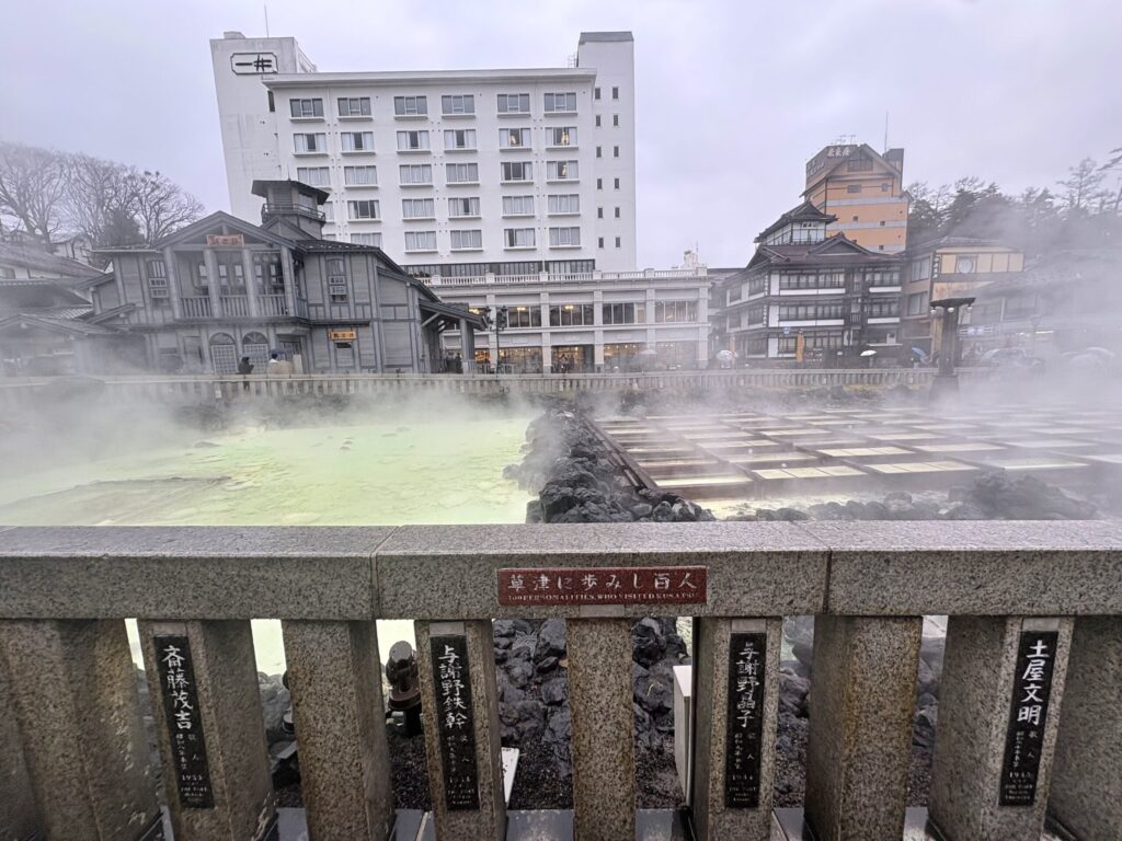 最後にせっかく草津町に来たため、湯畑を見て、無料温泉に入ってお別れ。